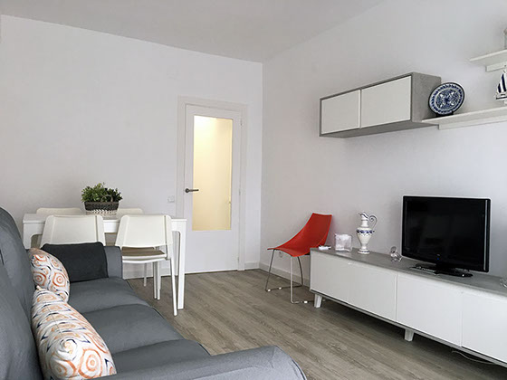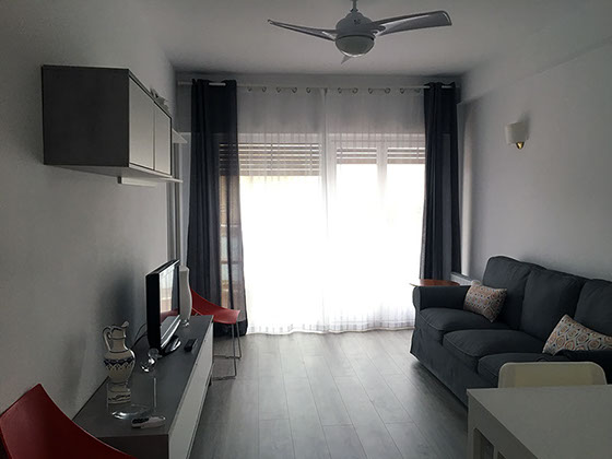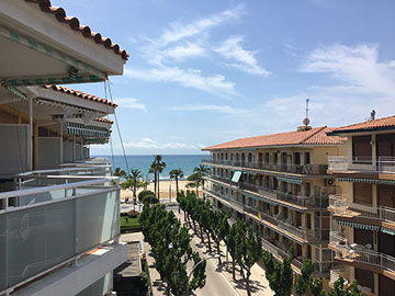 Apartament de 2 habitacions, cuina, menjador, bany i terrassa amb vista lateral a la platja del Regueral. Completament reformat, equipat amb rentadora, TV i rentaplats. HUTT 010697